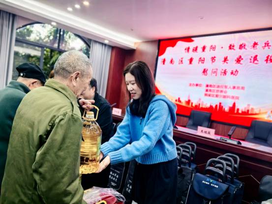 活动中,主办方为老兵们精心准备了米、油、纸巾等节日慰问品,副秘书长王雅薇亲自将满载着社会关爱与敬意的慰问物资送到每一位老兵手中,感谢他们为国防和军队建设作出的无私奉献。